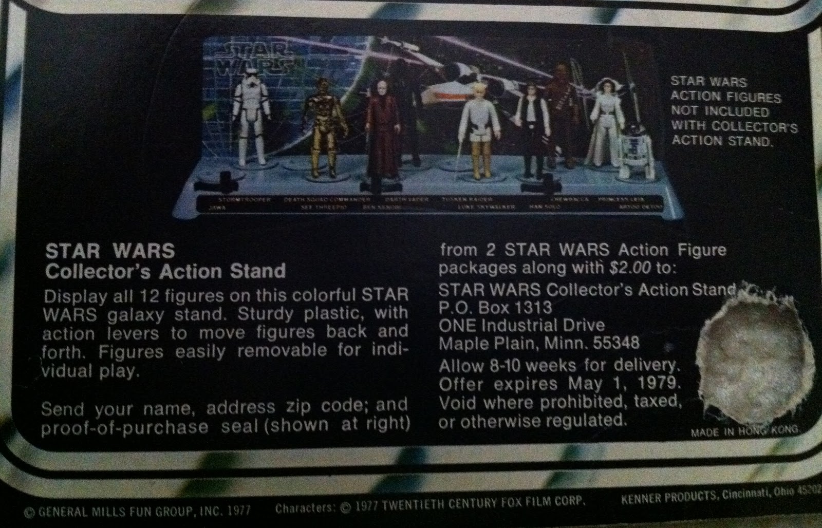 I had to have the Collector’s Action Stand so I immediately cut of the proof-of-purchase seals (thus the missing circle at the bottom of the cards, gathered my two dollars and sent it to Kenner. A little more than 10 weeks later it arrived.